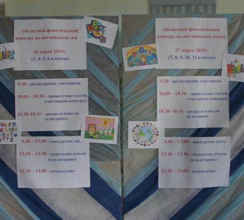 26 и 27 марта 2015 года был проведён II Областной фонетический конкурс на английском языке на базе МОУ СШ № 61 г. Волгограда. Организаторы конкурса – кафедра иностранных языков Института иностранных языков ФГБОУ ВПО «Волгоградского государственного социально-педагогического университета», кафедра иностранных языков и методики их преподавания ГАОУ ДПО «Волгоградской государственной академии последипломного образования», администрация и МО учителей английского языка МОУ СШ № 61 г. Волгограда при поддержке кафедры английского языка и методики его преподавания ИИЯ ФГБОУ ВПО «ВГСПУ». Партнёр конкурса – Авторизованный центр по приёму Кембриджских экзаменов «Ин Яз». В состав орг. комитета входили студенты факультета ДиНО ВГСПУ гр. Пб-11. В состав экспертной комиссии входили кандидаты наук, доценты ИИЯ ВГСПУ и ВГАПО, учителя английского языка МОУ СШ № 61 г. Волгограда, а также студенты 1 курса ИИЯ. В конкурсе приняли участие учащиеся средних школ, лицеев и гимназий г. Волгограда и Волгоградской области. Всего 220 конкурсантов.